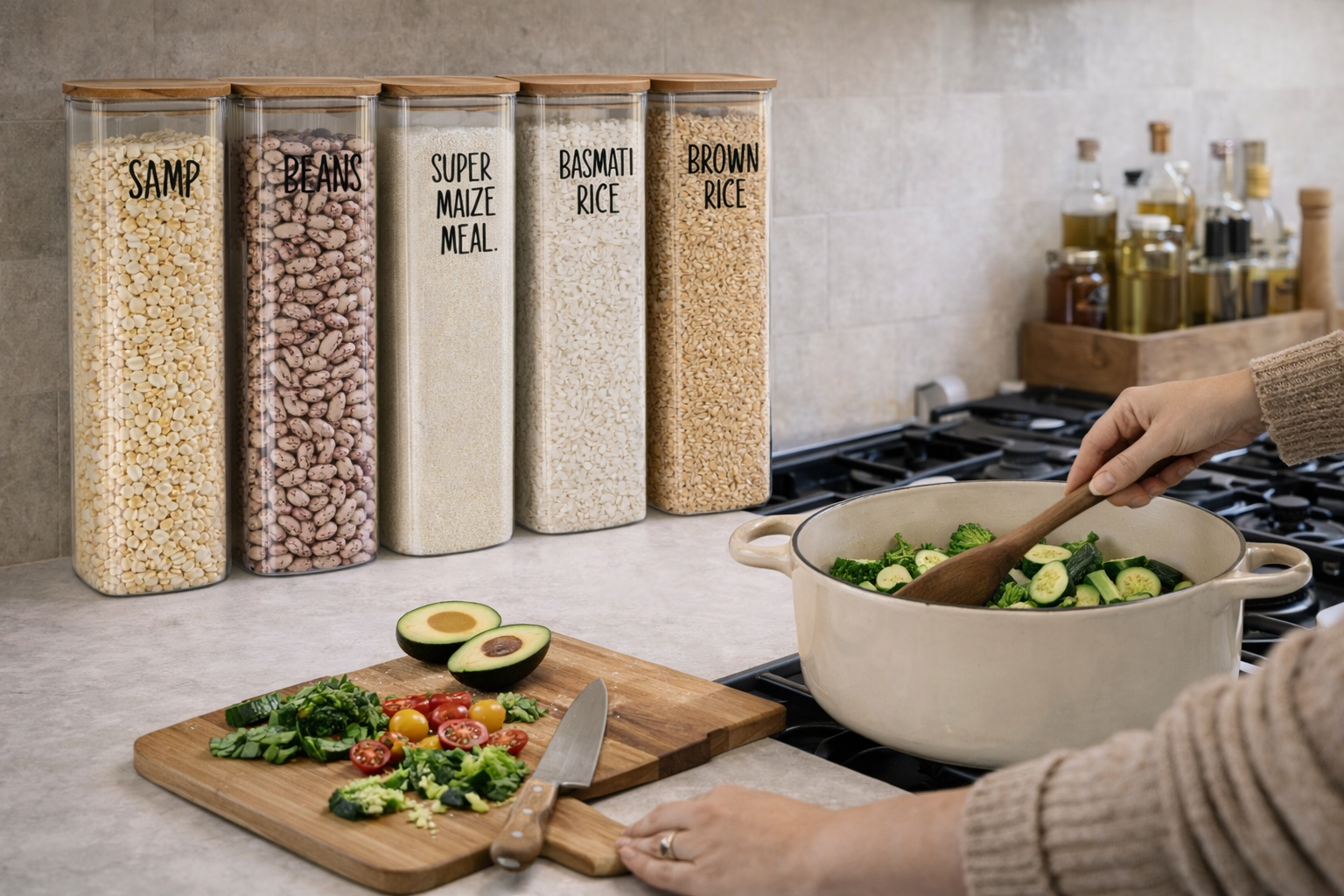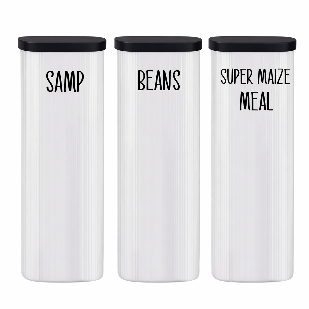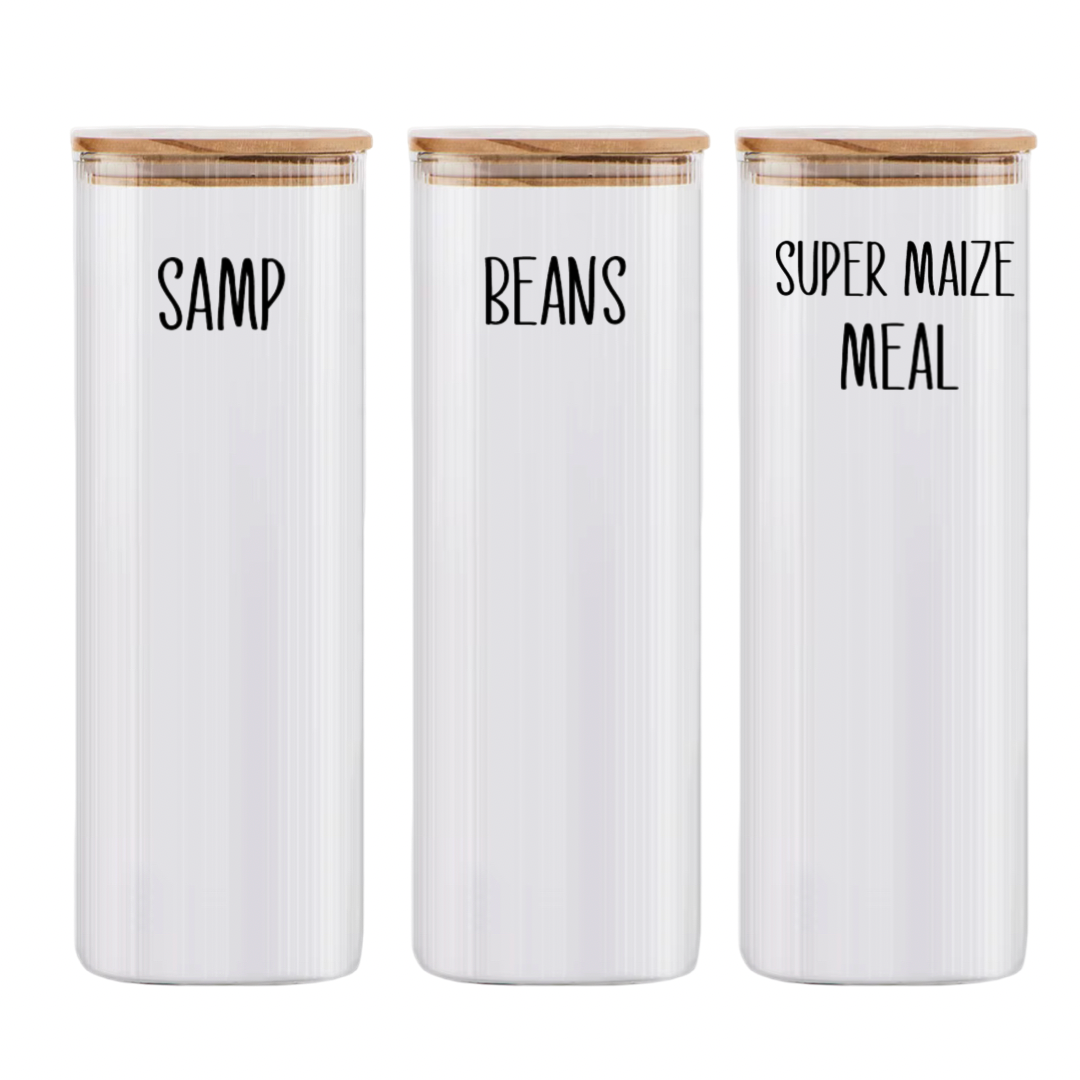 Perfect for storing all your favourite pasta shapes, rice or samp, these jars don’t just keep your food fresh – they also add a touch of style to your pantry or countertop. The clear glass makes it easy to see what’s inside, while the modern square design saves space and stacks beautifully. Whether filled with spaghetti, macaroni, or bow ties, these jars turn everyday storage into a display worth showing off!