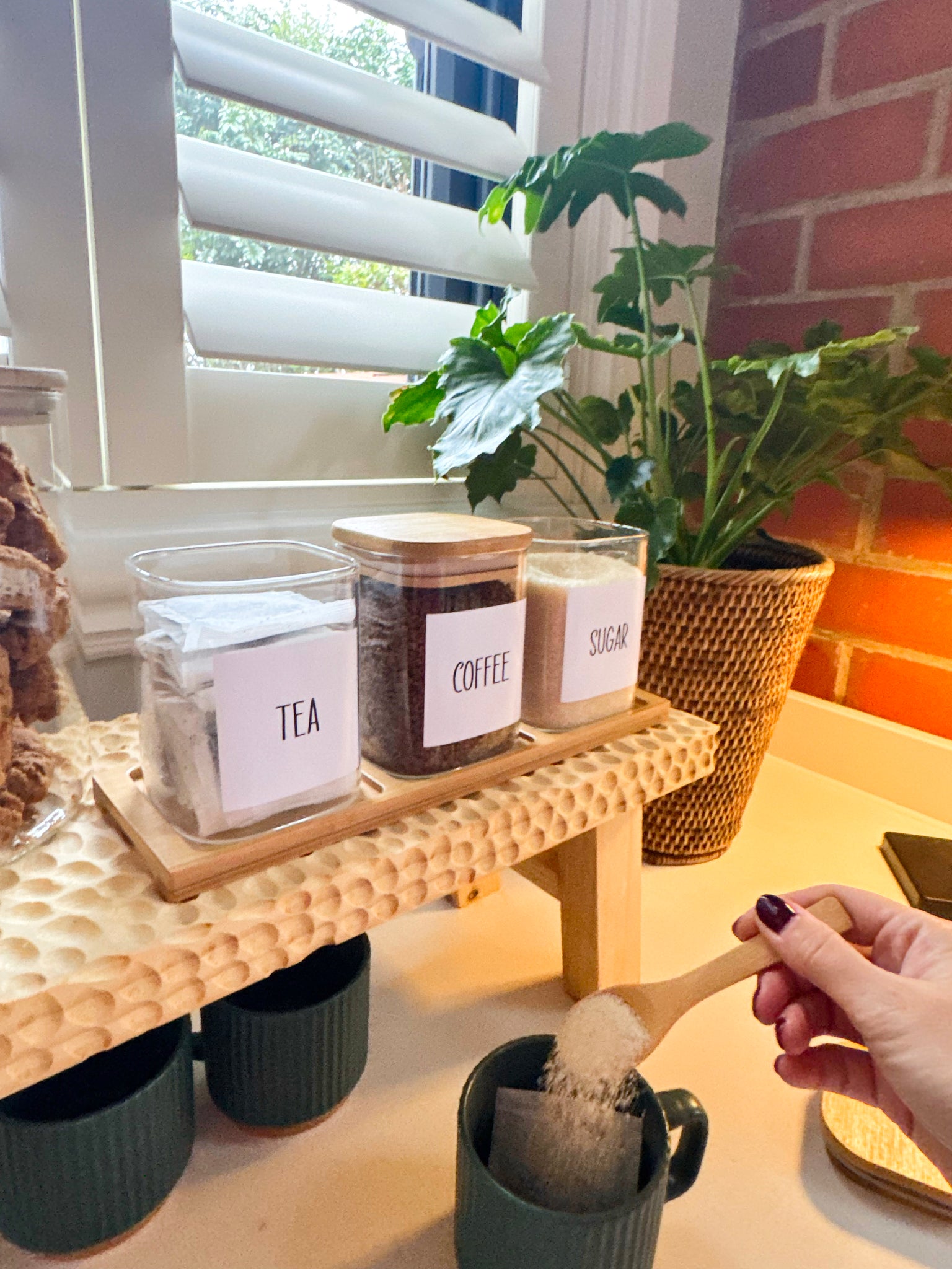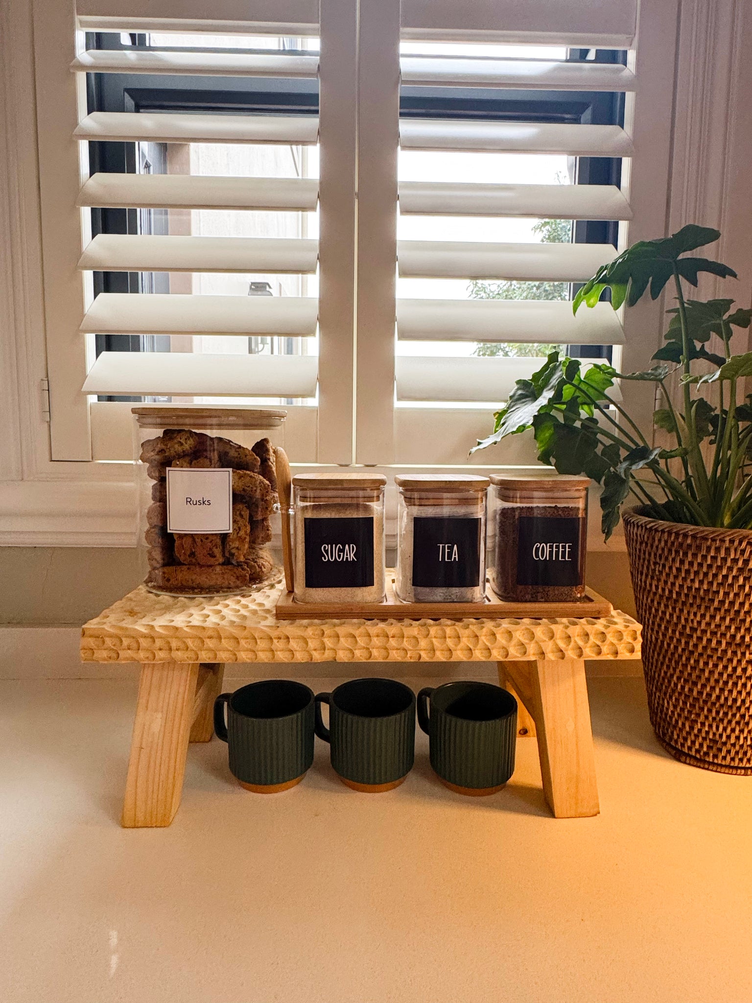 Bring style and functionality to your kitchen with this elegant glass and bamboo storage set. Perfectly designed for tea, coffee, and sugar, these jars come with airtight bamboo lids to keep your ingredients fresh, while the sleek glass adds a modern touch to any countertop. The included vinyl labels make organisation effortless and chic, so you’ll never mix up your essentials again. Complete with a matching bamboo tray and spoon, this set isn’t just practical – it’s a statement piece that elevates your tea and coffee station.